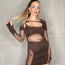 Un mini abito audace e magnetico, perfetto per distinguersi ✨. Il design con inserti in tulle trasparente e cut-out strategici crea un effetto vedo-non-vedo irresistibile, mentre la vestibilità aderente esalta le curve con sensualità e carattere 💘. Le maniche lunghe completano il look con un tocco sofisticato e contemporaneo.