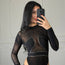 Il body Clelia è un capo dal carattere deciso e sensuale. Realizzato in rete trasparente con dettagli luminosi applicati, crea un gioco di contrasti che valorizza la silhouette. Il taglio aderente e le maniche lunghe lo rendono perfetto per outfit da sera, abbinato a pantaloni o gonne a vita alta. Un body pensato per chi ama brillare e distinguersi in ogni occasione ✨