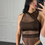 Il body Penelope è il capo che unisce raffinatezza e seduzione. Realizzato in tulle trasparente, avvolge la silhouette con giochi di trasparenze che lasciano intravedere la pelle. Il design con dettagli incrociati sul décolleté dona femminilità, mentre la fascia coprente in vita assicura equilibrio e stile. Perfetto con jeans a vita alta o gonne aderenti per un look da vera protagonista.