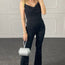 Una jumpsuit elegante e scintillante perfetta per brillare tutta la notte ✨. Il design con scollatura morbida drappeggiata e la vestibilità aderente esaltano la silhouette, mentre il tessuto tempestato di micro strass luminosi aggiunge un tocco di fascino e glamour 💘. I pantaloni leggermente svasati slanciano la figura con stile.