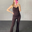 Una jumpsuit minimal e sofisticata, perfetta per valorizzare la silhouette ✨. Il design con scollatura morbida drappeggiata e spalline sottili crea un effetto delicato e femminile, mentre la vestibilità aderente e i pantaloni svasati slanciano la figura con eleganza 💘.