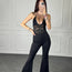 La Jumpsuit Miriam è un capo che unisce sensualità ed eleganza in un design unico. Il corpetto in pizzo trasparente con dettagli gancetti esalta la femminilità con un raffinato effetto vedo-non-vedo, mentre la scollatura profonda dona un tocco audace e deciso. La parte inferiore, dal taglio a gamba larga svasata, slancia la silhouette rendendo il look moderno e sofisticato.