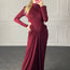 Un modello che cattura lo sguardo con la sua linea elegante e moderna. Questo abito lungo a maniche lunghe presenta un raffinato dettaglio drappeggiato sulla vita, che esalta la silhouette con stile. I tagli laterali aggiungono un tocco sensuale senza rinunciare alla classe, mentre la vestibilità aderente accompagna le forme in modo armonioso. Perfetto per una serata speciale o un’occasione importante, è il capo che non passa inosservato.