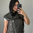 Un capo grintoso e versatile che dona subito carattere ad ogni outfit. Questo gilet in similpelle è arricchito da zip metalliche, dettagli a bottone e cintura regolabile in vita, richiamando lo stile biker in chiave moderna.